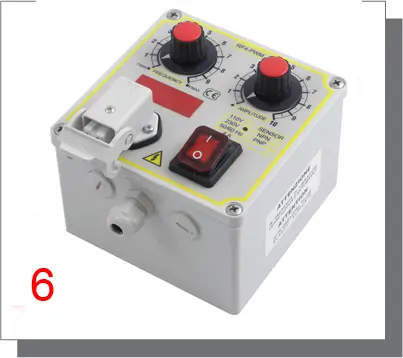 | (1) | 50/60 Hz (2) | | | NPN/PNP | 0/20 mA | amplitud/ Frecuencia | salida HZ 50/100 (5) | ON | Relé | CE | Amplitud SIND3 | Volt | Hz | | | |